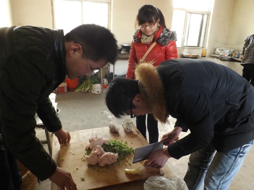 虽是“四九”寒天,可我们心情火热,温暖的太阳又格外的“慷慨有爱”,照得人们说不出的舒服。我们自筹经费,给老人们买了营养品和保健品,我们还买了芹菜、萝卜和五花肉,带了米、面、细粉和香油,在敬老院的食堂里亲自动手,主动下厨。洗菜、和面、擀饺子皮儿,剁馅儿、调料、包饺子 ,大学生村官们各自拿出自己的本领,秀出自己的绝活,已然把敬老院当成了自己的家,和厨房阿姨心神契合地配合忙碌着,有说有笑,家的味道在浑然不觉中自然酝酿。