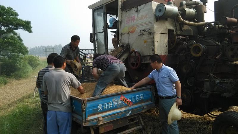 图为小桥村第一书记王忠田(右)和小桥村大学生村官李光辉(左)在田间地头等候收割机