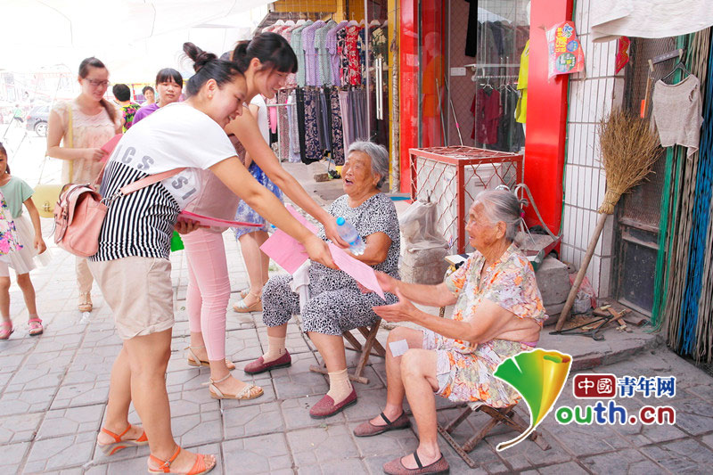 大学生村官李亚男结合具体事例讲解夏季如何正确饮水:“喝的时候要慢慢喝,不要渴了就猛喝;要喝温开水,不要喝冰水;要定时饮水,不要等口渴时再喝;要喝烧开过的水,不要喝生水;要喝新鲜温开水,不要喝“陈”水;还可以多喝加淡盐的温开水。”大学生村官王婷提醒路过群众:出门要戴帽子,穿棉质浅色的衣服;要多吃番茄、茄子等凉性蔬菜及各种瓜类;要多洗澡,并保证充足的睡眠。