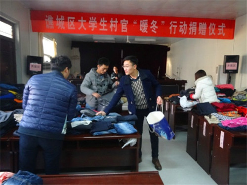 严冬已至,寒意渐浓,为了让孤寡老人和留守儿童过一个温暖舒适的冬天,谯城区大学生村官开展了以“与爱同行,关爱孤寡老人和留守儿童”为主题的“暖冬”活动。为确保活动能真正帮助到需要的村民,谯城区大学生村官志愿者服务团向全区大学生村官发起活动倡议,首先由各位大学生村官深入到村民家中走访摸排困难户以及其需要的物资,并汇总公示。大学生村官根据摸排上来的情况有针对性的进行物资捐赠,同时积极向身边的同事朋友进行宣传,争取捐赠物资。捐赠活动现场共筹集衣物鞋帽千余件,自行车3辆,棉被6床。捐赠所得物资,由大学生村官根据困难群众所需领取后送到群众手中。