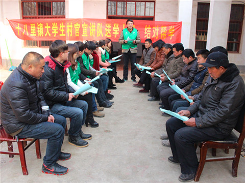 (图为十八里镇大学生村官送学上门、结对帮学)