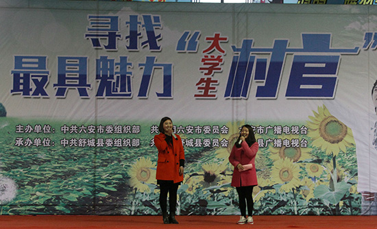 近日,六安市最具魅力大学生村官评选活动舒城分站预赛在县体育馆举行。46名大学生村官共表演了歌唱、舞蹈、朗诵、小品、相声、魔术、书法等24个节目,活动评委由市委组织部、市广播电视台、县委组织部、县广播电视台、县妇联有关负责人担任。