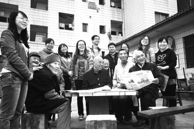 街道志愿者和老人们在一起。 本报通讯员 樊强摄
