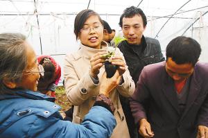 ■村官杨媚给当地种植户培训茄子嫁接技术