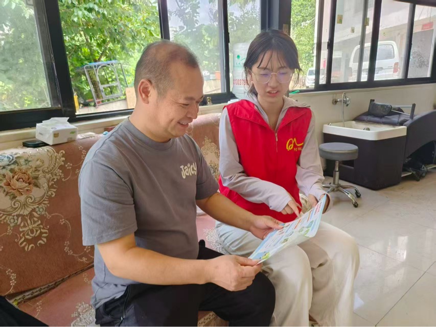 吴璧含(右)走访农户。(黔灵村村委会供图)