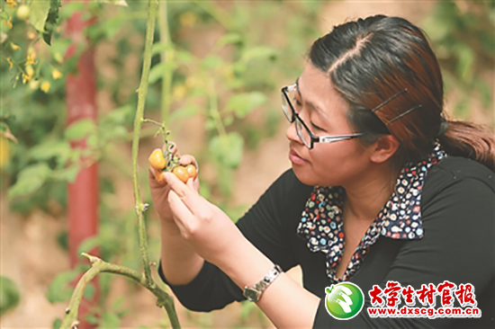 图为王东云在查看西红柿生长情况。 郝亚鑫摄