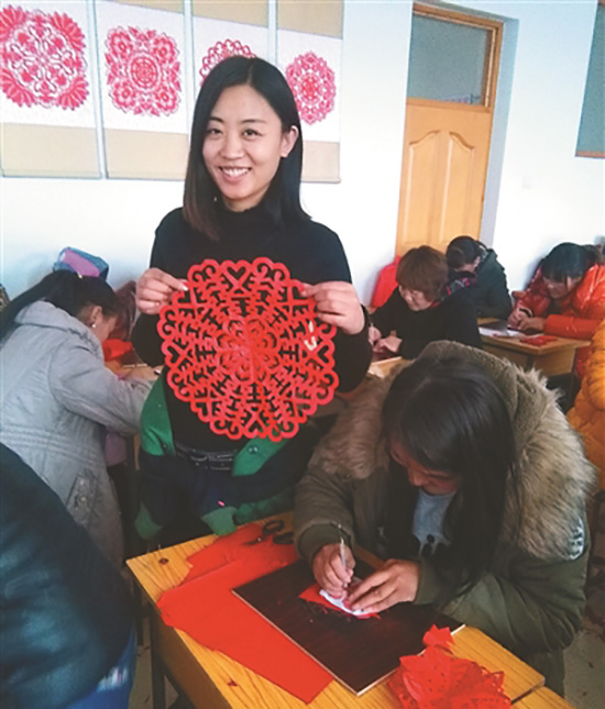试水成功的贠彩霞,开始准备大规模生产。“剪纸艺术是一项精细活,入门不是那么简单,从业人员必须经过系统培训。”刚开始召集村民报名学习时,大家不认这个东西,觉得会像以前一样挣不到钱。但她没有气馁,凡是对此有质疑的村民,贠彩霞就带着她们到公司里参观,“我一边现场给他们剪作品,一边细心讲解剪纸工艺制作流程、分析市场前景。”经过一番动员,就有100人报名学习。“我大学曾经在画室当过代课老师,教学方面积累了一些经验。”贠彩霞一丝不苟、耐心讲解,每天上午三小时的课,常常讲得口干舌燥,但她从不觉得累。她还请来张家口蔚县的师傅给村民做免费培训。“从设计到刀刻,从点染上色到装裱制作,只有熟练掌握了四道工序,才可以成为剪纸公司的合格人员。”现在,在贠彩霞和其他老师的共同努力下,第一批合格学员已经出师。
