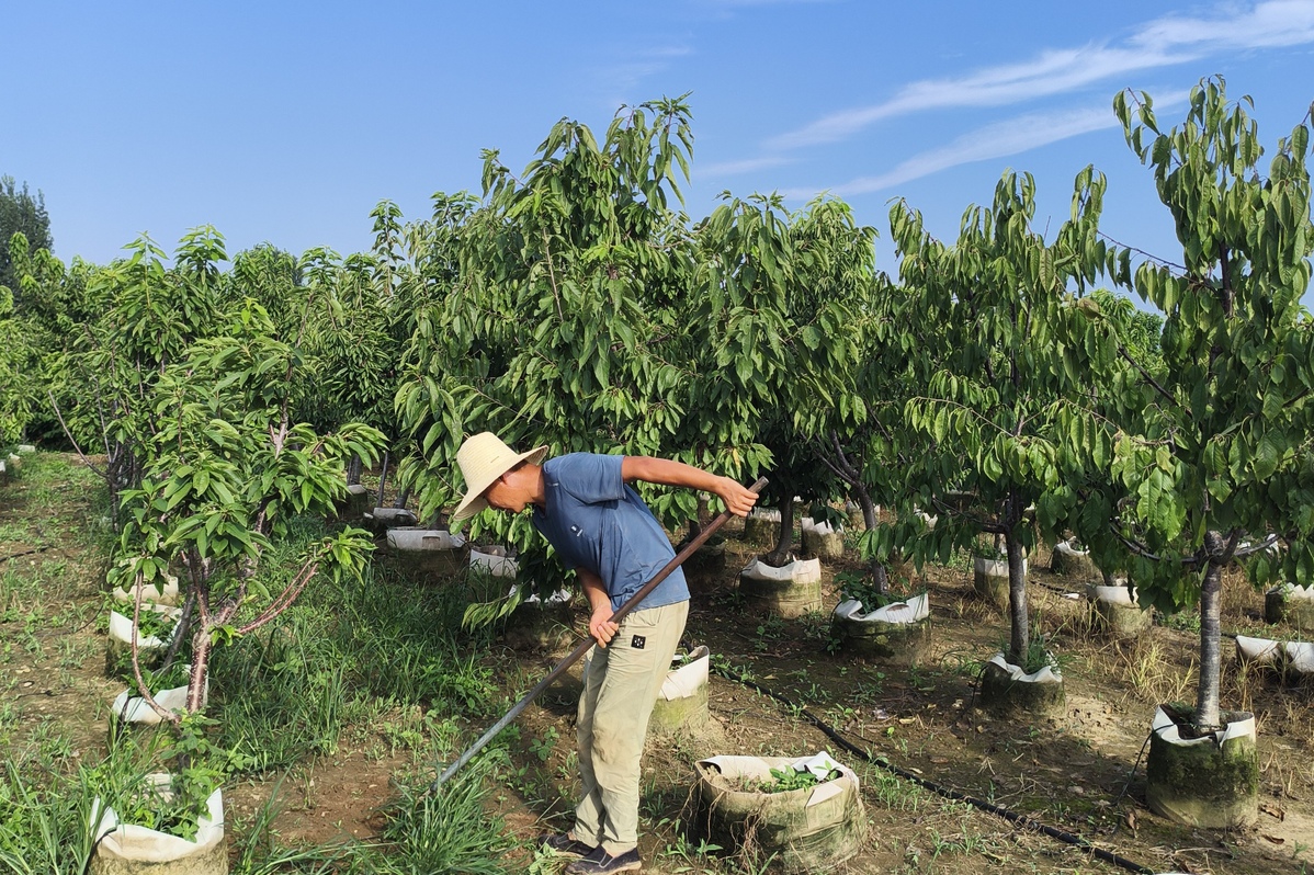 “樱桃苗带回去种在自家庭院、阳台、大田里都能成活,当年结果。”陵园山脚下,党员陈香英带着十几位村民除草、剪枝、拍视频。五年间,繁育3万余棵苗木和成树,100亩山地成了远近闻名的樱桃园。“今年已经售出苗木、盆景2000多棵,加上采摘收入,效益一年比一年好。”陈香英说,党支部请专家、搞培训,不少村民成了果树把式。以产育景,以景生金,南陈庄柿子林基地、苹果园、核桃园变身“网红”打卡地。