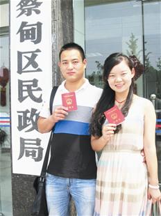 6月28日,大学生村官贾芳在她24岁生日当天,与她驻村的蔡甸奓山街星光村村民左壮来到区民政局,领取了结婚证书。