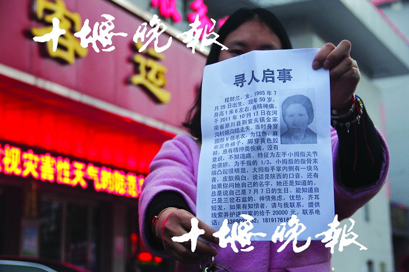 24岁的陕西姑娘小陈,为寻找患精神病走失的母亲,几乎走遍陕西商南、河南淅川及我市郧阳区的所有乡镇。4年时间里,她找到17个疑似妈妈,可惜都不是她要找的人。