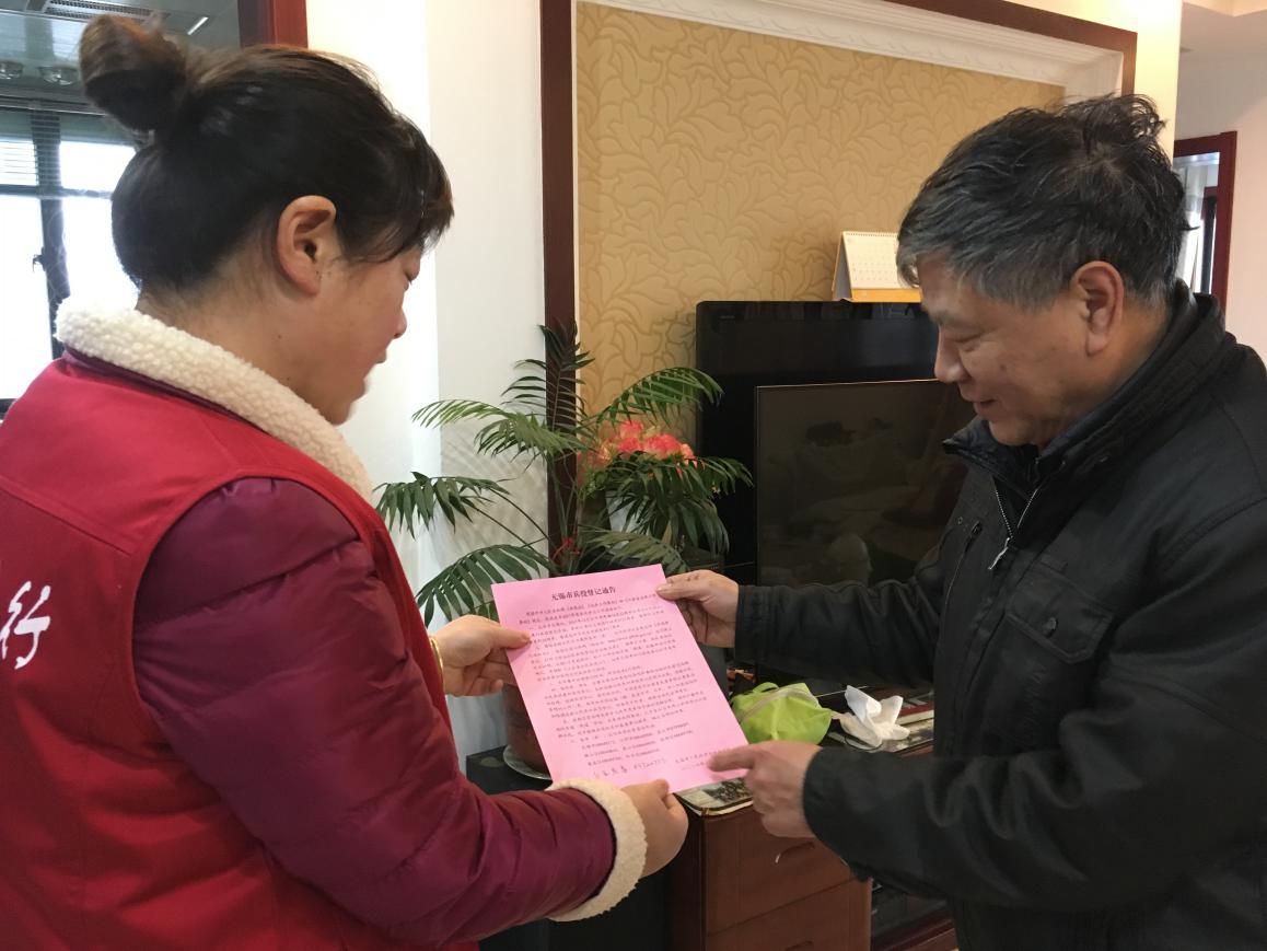 图为社区大学生村官小许走入适龄青年家中,向青年及家属宣传征兵工作