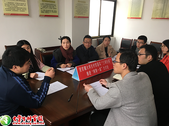 在全县掀起的落实“三项任务”、推进“两聚一高”大讨论热潮中,有这样一个积极响应、认真学习、热烈讨论、探索落实的群体,他们就是贤官镇大学生村官。