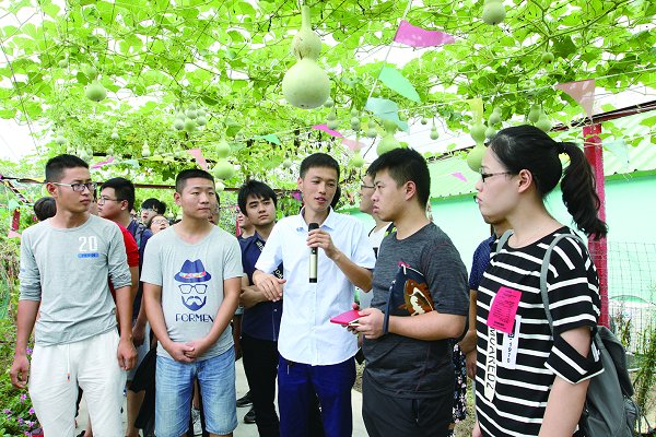 学员们在连云港市赣榆区沙河镇大学生村官王其旭等创办的博雅农庄考察。