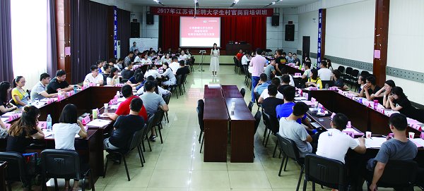 培训中,邀请了干事创业颇有成就的优秀大学生村官现身说法。大学生村官选调生、连云港市连云区院前社区主任徐帆分享了自己开展社区工作的经验;连云港市赣榆区城西镇副镇长彭秀政讲述了自己在任职大学生村官时期服务为民、带民致富的故事;连云港市赣榆区塔山镇党委副书记赵杰为学员们讲述了自己带领村民脱贫致富的艰辛历程。赵杰鼓励学员:“只有保持昂扬的精神状态,俯下身子加油干,才能把工作做好。”这番情感炽热的话语博得了学员们阵阵掌声。