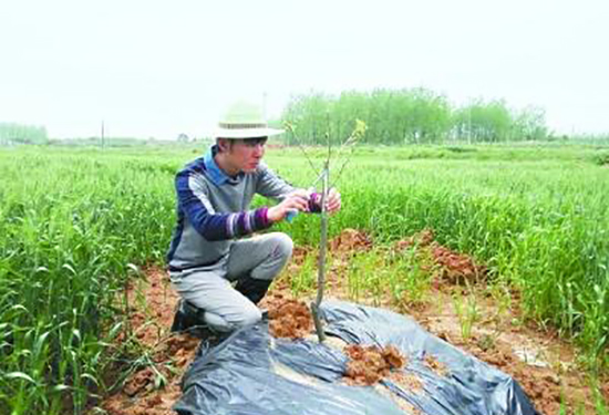 毛浩宇在田间修剪山核桃树
