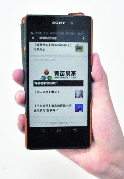 尽管昨天是周末,逄曜玮也没闲着,料理家务之余,她不时浏览“青苗易家”微信平台,随时关注供求信息。25岁的逄曜玮大学毕业后成了泊里镇小王家村的一名村官,如何跟当地村民打成一片,为他们搞好服务,成了她心里的头等事儿。“今年4月底的一天中午,我在镇上的便民服务中心值班时,接待了一位来自西安的樱花苗采购商,当时他很着急,说是需要大量樱花苗木,但当地没有,他网上查阅资料,得知青岛西海岸新区张家楼镇有栽培这东西的,于是从西安专程赶过来购买。”逄曜玮回忆说,正巧小王家村里的苗农有樱花苗圃,她便带着采购商到苗农处,介绍双方认识,并最终促成了这笔交易。