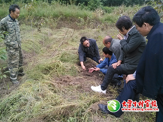 杨志宏和村民一起到陕西留坝县考察猪苓种植。刘侃 供图