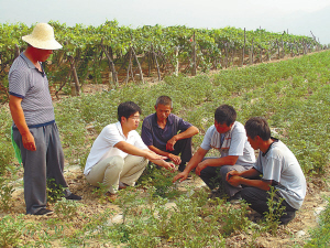 “听起来好,可是谁带头,谁出钱?”大家抛出一个个疑问。恰巧,该村以种植销售骏枣名扬新疆喀什地区的党员武有忠从新疆回来了。武有忠一直想用自己的专长在家乡发展,但苦于没有清晰的思路。2009年底,在高旭彬的组织下,锦源种植专业合作社成立了。合作社流转土地160余亩,先后有30余户村民以资金、技术、土地等不同形式入社。2010年春天,合作社种植矮化骏枣100亩,出苗13万株,60亩土地则种植了蔬菜和葡萄。为实现无公害种植,合作社还养殖了100多只羊,专门生产农家肥。60亩无公害葡萄和蔬菜今年收入达8万元。看着好收成,武有忠咧着嘴直乐:“这大学生眼光就是长远,跟着他干,准没错!”