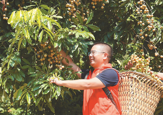 吴安亭采摘桂圆。 张鹏 摄