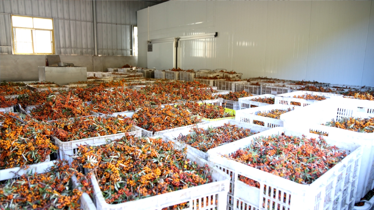 武山县榆盘镇苏家村沙棘加工厂沙棘等待脱果。侯向阳 摄