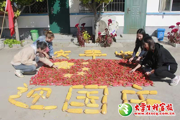 9月29日,北京市延庆区选调生用辣椒和玉米摆出国旗图案和“庆丰收 迎国庆”字样,祝福我国首个农民丰收节,祝愿我们伟大的祖国繁荣昌盛。