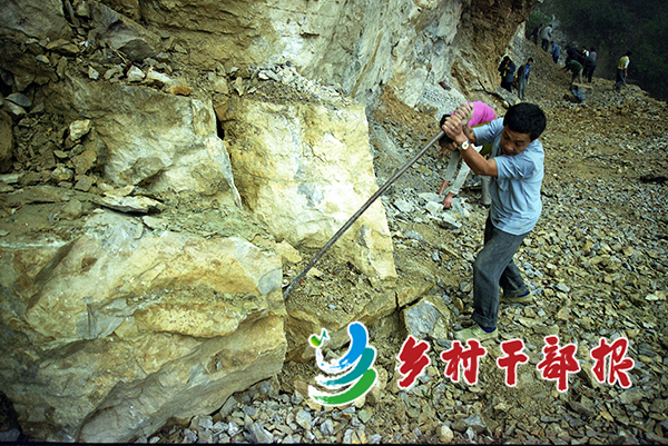 1997年农历冬月十二,你带领村民在“鱼儿溪”炸响了第一个向封闭宣战的开山炮。没有钻机,你就腰系长绳,趴在箩筐里,吊在几百米的悬崖上打炮眼;没有挖机,你就在悬崖峭壁上先放一炮,炸个“立足之地”,然后再用钢钎和大锤凿。全村青壮年不分男女全部上工地,分几个路段施工。大家吃住在山洞里,晚上睡在山洞口的人还要在腰上系条绳子,一头系在树桩上,免得夜里翻身掉下悬崖。就这样,你们用最原始的方式,在空中荡、壁上爬,用钢钎撬、用雷管炸、用两脚蹬,在半山腰炸开一处处缺口,“步步为营”向前推进。