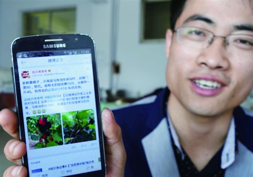 他叫侯合雷,东柳沟村一名90后大学生村官,“微博卖菜”@临沂小村官的博主,也是一名“互联网+”的试验者。侯合雷说,微博卖菜缘起于2014年初的一件事。东柳沟村南临汶河,群山环绕,生态环境不错。多年前,村民自发建起了温室大棚,种植的芹菜、黄瓜在附近一带名气很大。每到收获季节,会吸引许多菜贩前来收购。但在去年春季,芹菜的价格突然跌至谷底,村头也没有了菜贩的踪影。“天气越来越暖和,眼看着我种的8000斤芹菜就要烂在地里,真是愁坏了”,当时的情景村民高文勇记忆深刻。没想到,侯合雷想到了求助于网络,他以“@东柳沟芹菜”的名义,发出了一条“沂蒙山革命老区芹菜滞销求助”的微博。谁知一经发布,网友纷纷转发并伸出了援手,全村12万斤滞销芹菜被抢购一空。
