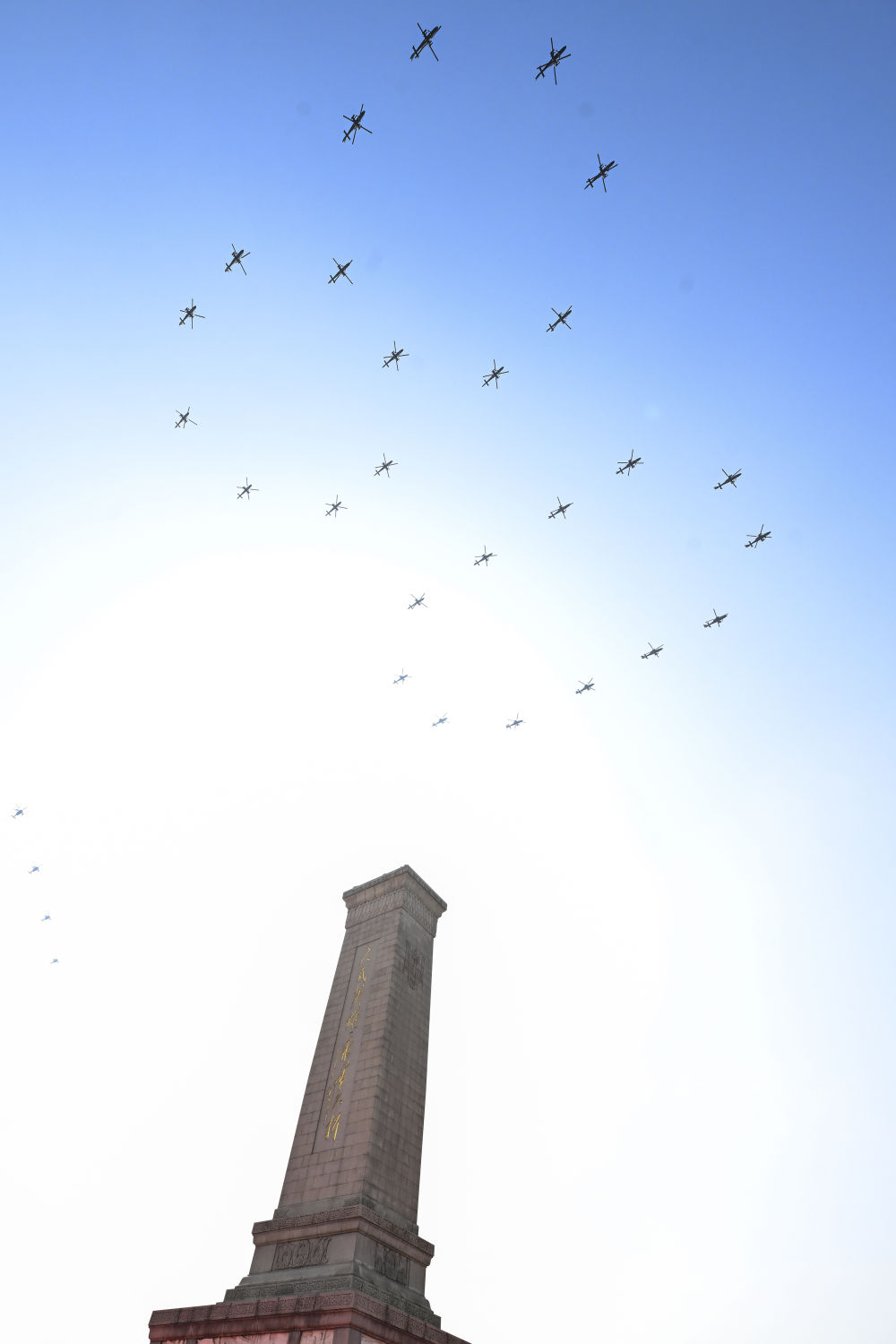 这是空中护旗梯队飞过北京上空